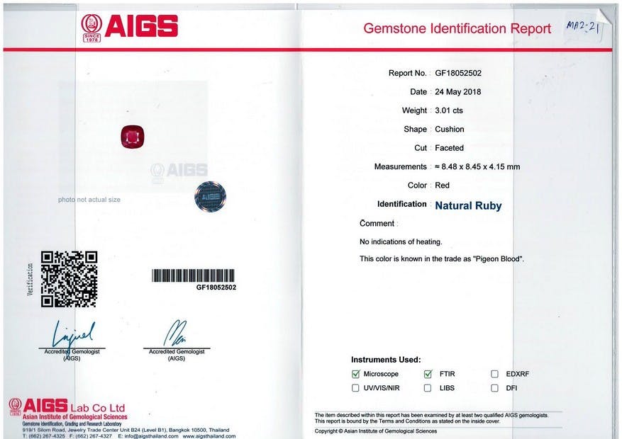 - Certificate Laboratory.: AIGS
